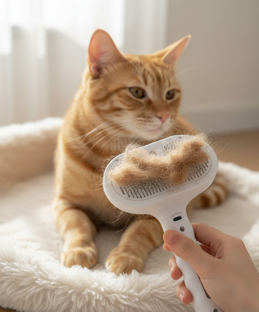 Brosse vapeur 3‑en‑1 pour animaux — décolmatage des poils, soin du pelage, chauffage rapide